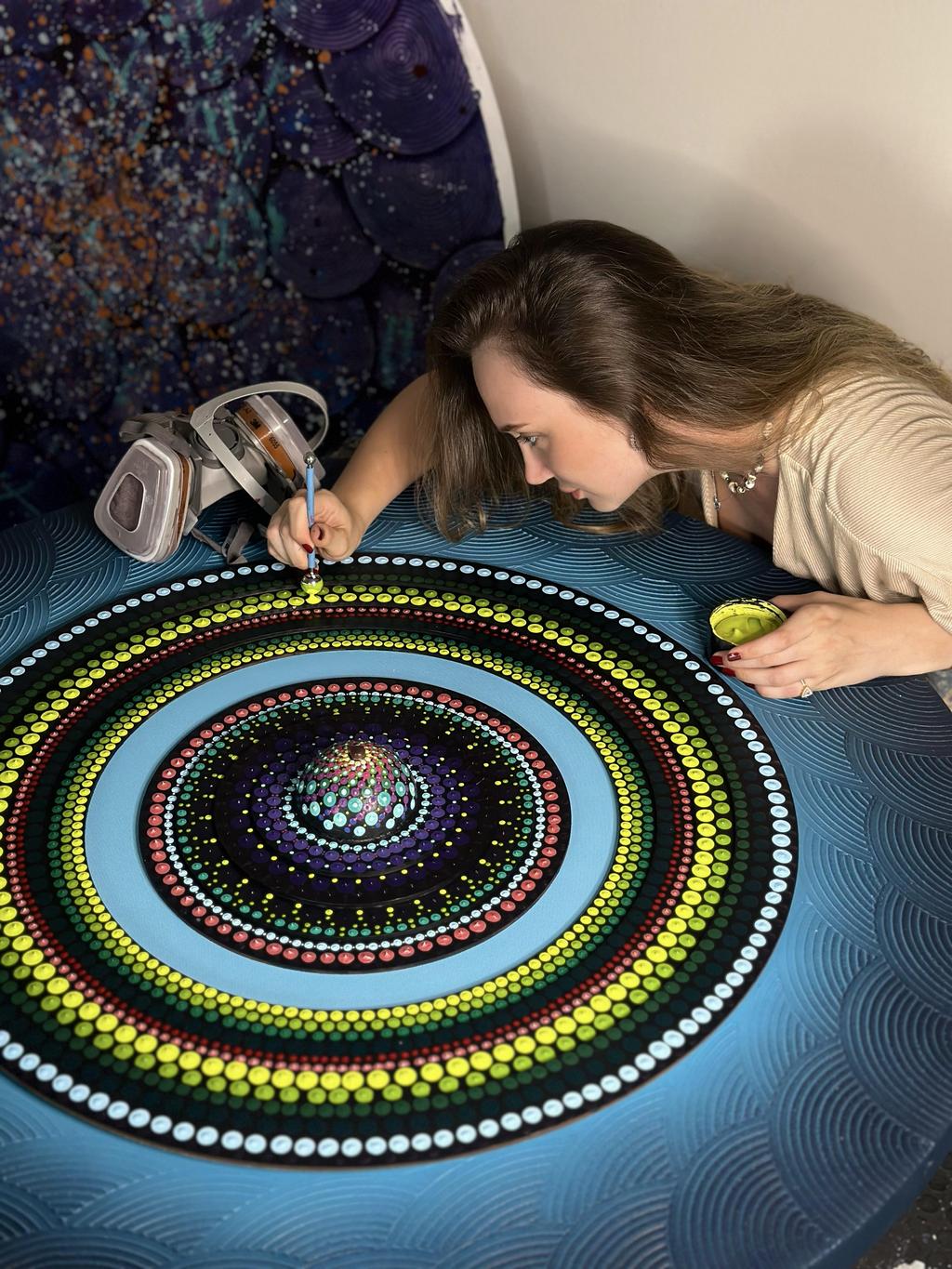 Melisa’nın eserleri, kişisel yolculuğunu ve içsel deneyimlerini yansıtan soyut bir dil taşır. Temelde soyut çalışan sanatçı, zaman zaman kendi yaşamıyla derin bağ kurduğu sembolik figürleri de kompozisyonlarına dahil eder. Bu figürler, onun için yalnızca görsel unsurlar değil; güç, direnç ve kişisel anlam taşıyan katmanlardır. Katmanlı yüzeyler ve noktasal dokular, hem evrenin sürekliliğini hem de insan ruhunun derinliklerini hissettiren çok boyutlu bir estetik sunar.